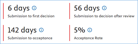 审稿时间参考:从提交到接收的时间一般是142天(中位数)。