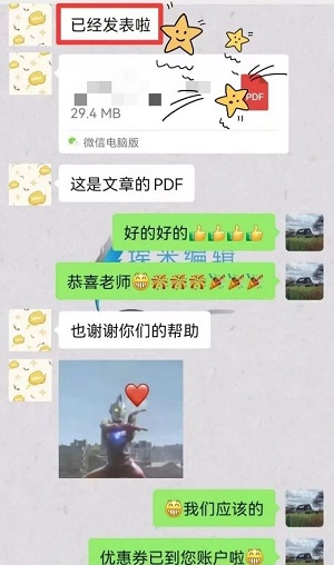 润色质量很高,由于我不是英语母语者,很多表达不地道,而埃米编辑的润色服务很好的弥补这一鸿沟;文章润色后不仅语言质量有所提升,甚至在表达方面也更为准确贴切;整个过程反馈非常及时,适合着急毕业投稿的学生或者有科研发表压力的高校教师。起初,只是因为导师的推荐而选择了埃米,这次接触下来,感觉埃米确实值得信任和推荐!由于自身努力和导师以及埃米的帮助,整个投稿过程一直到接收都非常的顺利,也祝各位同道中人文章顺利接收!科研顺利,生活愉快!