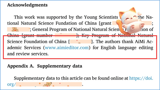 作者在论文致谢部分提到,感谢埃米编辑提供的专业论文润色服务。之后作者还推荐了朋友来埃米润色。