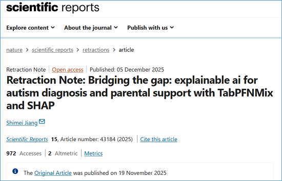 2025年11月19日,标题为"Bridging the gap: explainable AI for autism diagnosis and parental support with TabPFNMix and SHAP"的论文,在Scientific Reports(影响因子3.9,出版商为Springer Nature)上正式发表。