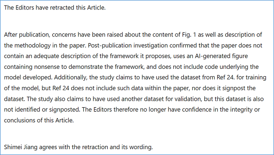 论文中的示意图被期刊明确指出是“包含无意义内容的AI生成图”。