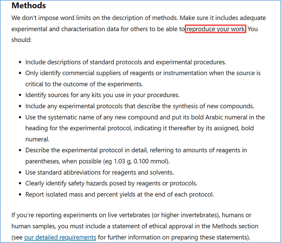 Scientific Reports在作者指南中对Methods(方法)部分的数据透明度提出了明确且严格的要求,要确保研究的可重复与可验证。