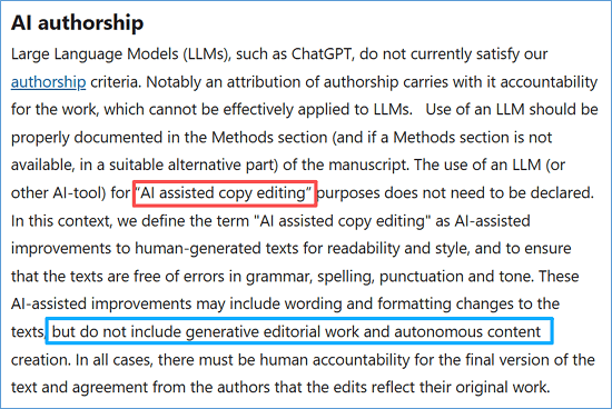 Springer Nature关于AI作者身份的说明