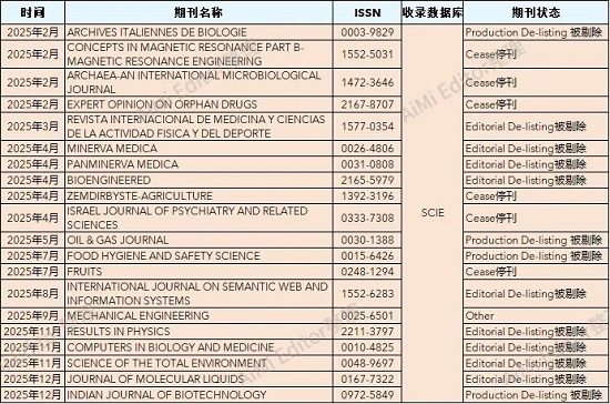 科睿唯安官网发布了2025年12月数据库收录变化文档,此次更新共有13本期刊被剔除(其中4本之前为On Hold),分别是2本SCIE、1本SSCI、10本ESCI期刊。增加了68本ESCI期刊。文末附表格下载。