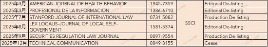 2025年,有93本ESCI收录的期刊(12月有10本)被剔除;26本期刊仅更改了名称;另有481本被ESCI新增收录的期刊(12月新增68本)。期刊详情请下载附表查看。
