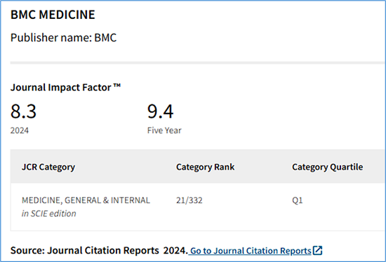 恭喜经埃米编辑参与润色的文章,成功发表在SCI期刊:BMC Medicine,JCR分区:医学内科Q1,2025中科院期刊分区:医学1区Top,IF 8.3。