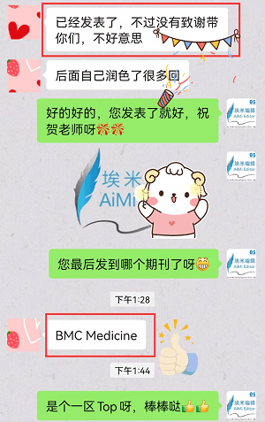 作者在埃米返修润色+自己反复修改后,文章成功发表。