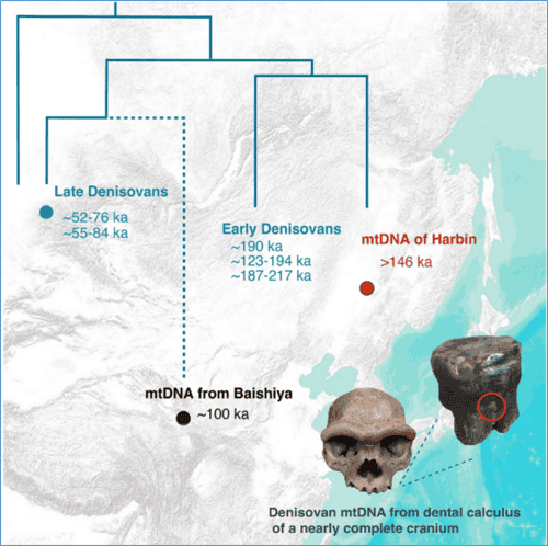 核心突破:今年,中国的研究团队对保存近乎完整、距今至少14.6万年的哈尔滨人头骨化石开展古蛋白和古DNA研究,发现哈尔滨古人类是丹尼索瓦人,且线粒体属于已知早期丹尼索瓦人支系。