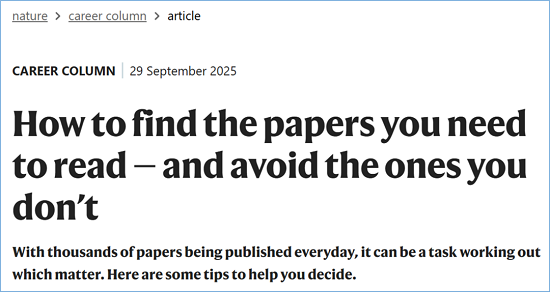 一起看看Nature分享的5个筛选文献技巧,告别文献焦虑。