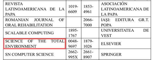 诸多问题之下,STOTEN在2024年10月被WOS标记为On Hold状态;在2025年11月17日被剔除SCI期刊;目前已经在Master Journal List中无法查询。