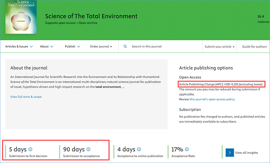 因其审稿速度较快、版面费适中,STOTEN被不少高校的环境、化工等专业列为“毕业保底刊”,在很多人印象中,只要数据扎实、研究方向契合,投稿STOTEN的论文接收率非常高。
