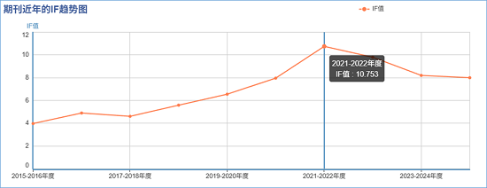 被剔除前,期刊JCR Q1,中科院2区Top(在2023年还是中科院1区Top),2024 IF=8.0,2020年以来影响因子稳定在8分以上,一度突破10。