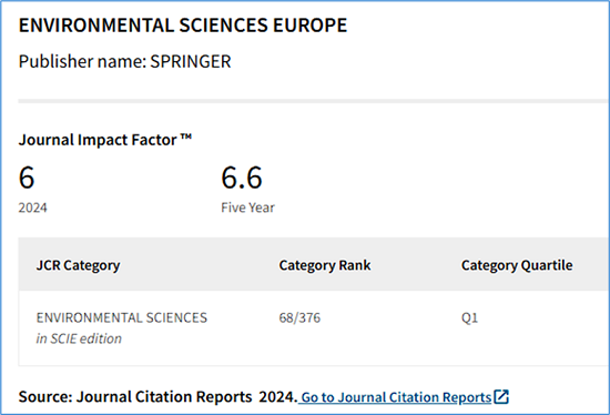 期刊名称:Environmental Sciences Europe(SPRINGER出版)