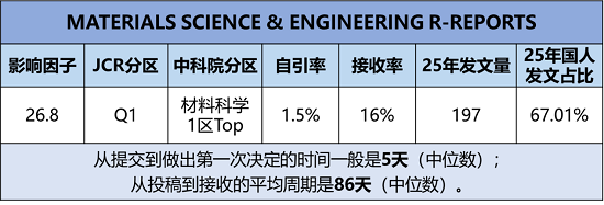 期刊官网:https://www.sciencedirect.com/journal/materials-science-and-engineering-r-reports
