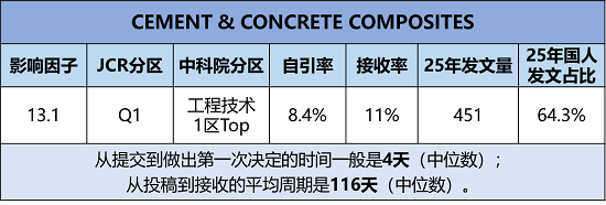 期刊官网:https://www.sciencedirect.com/journal/cement-and-concrete-composites