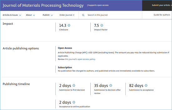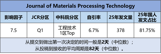 期刊官网:https://www.sciencedirect.com/journal/journal-of-materials-processing-technology