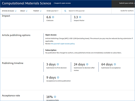 期刊官网:https://www.sciencedirect.com/journal/computational-materials-science