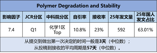 期刊官网:https://www.sciencedirect.com/journal/polymer-degradation-and-stability