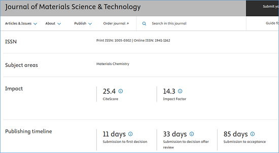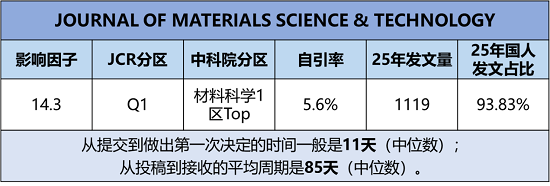 期刊官网:https://www.sciencedirect.com/journal/journal-of-materials-science-and-technology