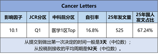 期刊官网:https://www.sciencedirect.com/journal/cancer-letters