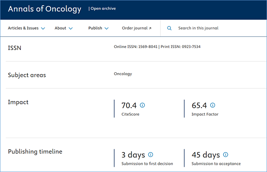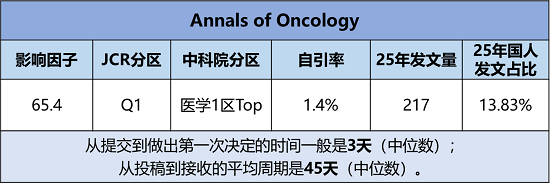 期刊官网:https://www.sciencedirect.com/journal/annals-of-oncology
