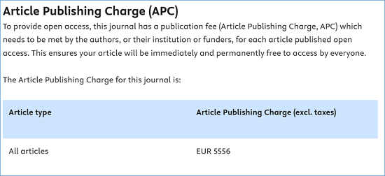 发表模式:订阅 & OA;如选OA,版面费约5556欧元。