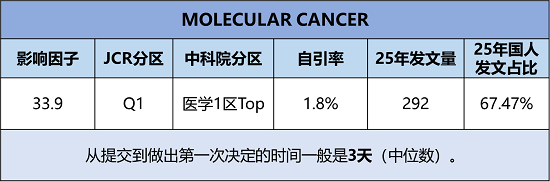 《MOLECULAR CANCER》创刊于2002年,出版周期为Continuous publication(持续出版),由BMC出版社出版。