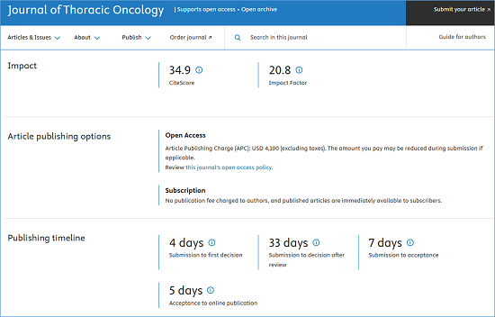 期刊官网:https://www.sciencedirect.com/journal/journal-of-thoracic-oncology