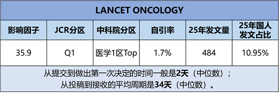 期刊官网:https://www.thelancet.com/journals/lanonc/home