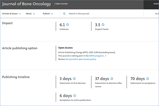 期刊官网:https://www.sciencedirect.com/journal/journal-of-bone-oncology