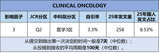 期刊官网:https://www.sciencedirect.com/journal/clinical-oncology