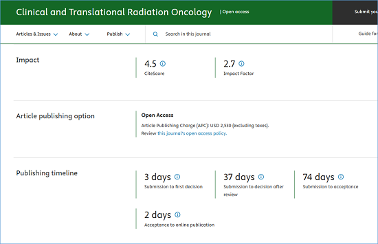 期刊官网:https://www.sciencedirect.com/journal/clinical-and-translational-radiation-oncology