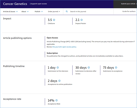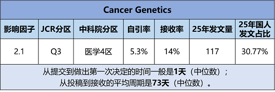 期刊官网:https://www.sciencedirect.com/journal/cancer-genetics