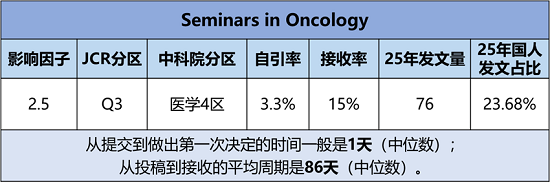 期刊官网:https://www.sciencedirect.com/journal/seminars-in-oncology