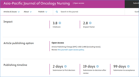 《Asia-Pacific Journal of Oncology Nursing》创刊于2014年,出版周期为Monthly(月刊),由Elsevier出版社出版。