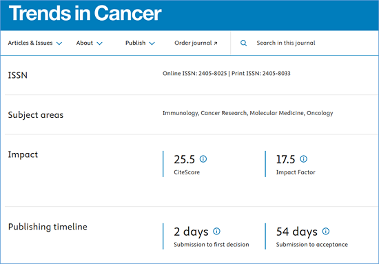 期刊官网:https://www.cell.com/trends/cancer/home