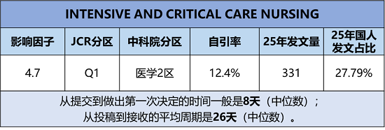 期刊官网:https://www.sciencedirect.com/journal/intensive-and-critical-care-nursing
