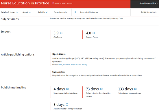 期刊官网:https://www.sciencedirect.com/journal/nurse-education-in-practice