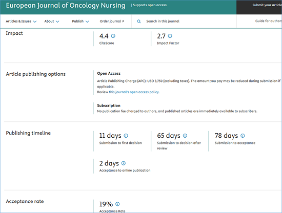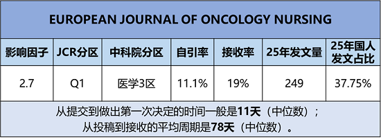 《EUROPEAN JOURNAL OF ONCOLOGY NURSING》创刊于1997年,出版周期为Bimonthly(双月刊),由Elsevier出版社出版。