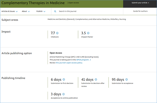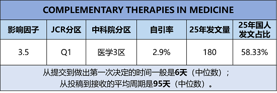 期刊官网:https://www.sciencedirect.com/journal/complementary-therapies-in-medicine