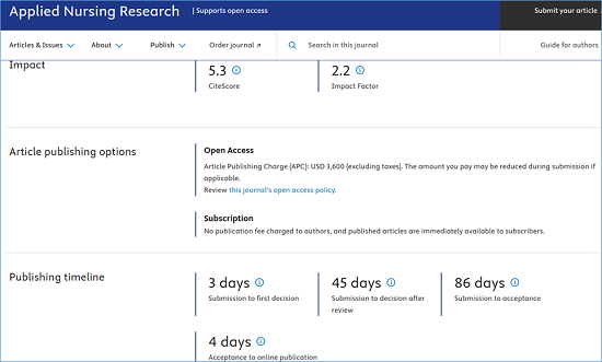 期刊官网:https://www.sciencedirect.com/journal/applied-nursing-research