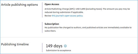 发表模式:订阅 & OA;如选OA,版面费约3690美元。
