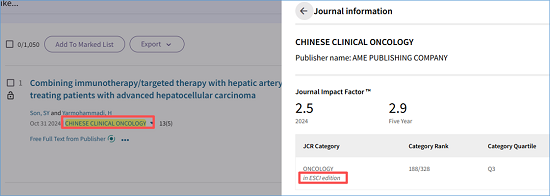 期刊信息:CHINESE CLINICAL ONCOLOGY被ESCI收录,IF 2.5,JCR Q3。