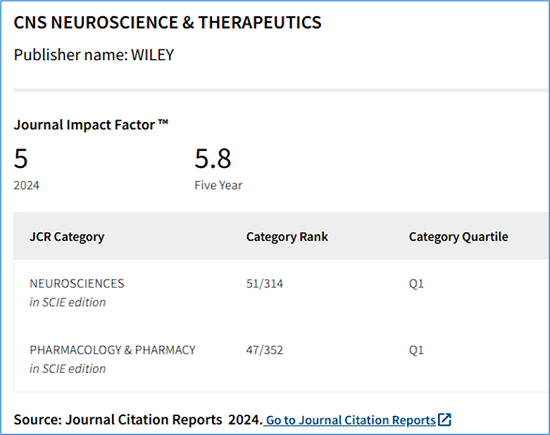 期刊名称:CNS Neuroscience & Therapeutics(WILEY出版)