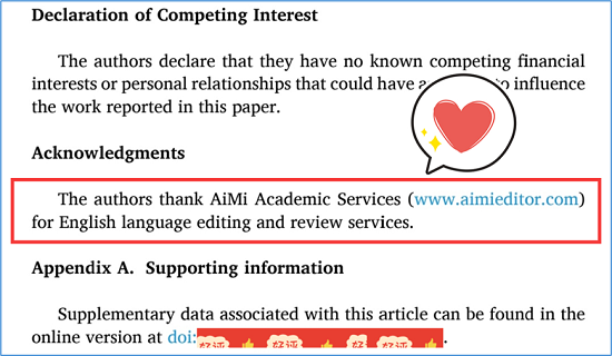作者初稿润色后,文章顺利发表。并在论文致谢部分提到,感谢埃米编辑提供的专业论文润色服务。
