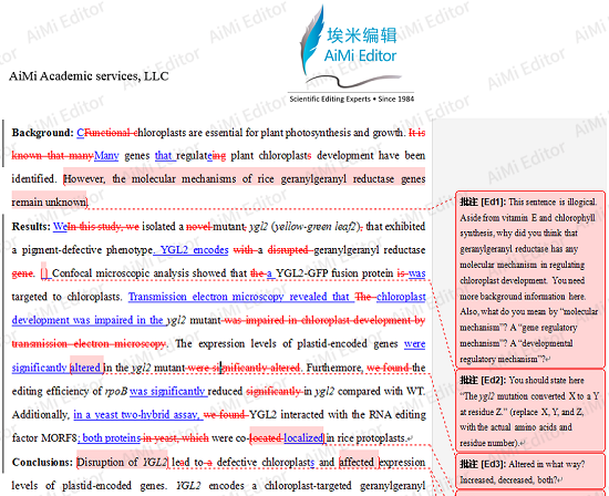 埃米编辑的专家编辑不仅会对语言进行润色(包括语法、逻辑、模糊性等),还会检查文章科学性,做出批注提示或修改建议。作者可以参考编辑的意见和批注细心完善论文,在提高文章质量的同时,一定可以提升自己的写作水平哦~