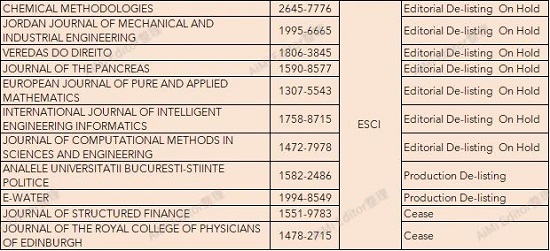 ◇ Editorial De-listing: 期刊不满足收录的质量标准,被剔除;